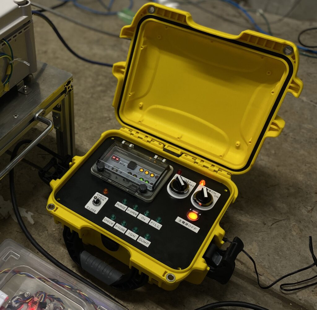 また、エンジンを燃焼させるためにGSE(Ground Support Equipment)を扱うことも燃焼班の魅力の一つです。TSRPでは人間による誤りを少なくするため半自動でエンジンに点火させるGSEを開発しました。