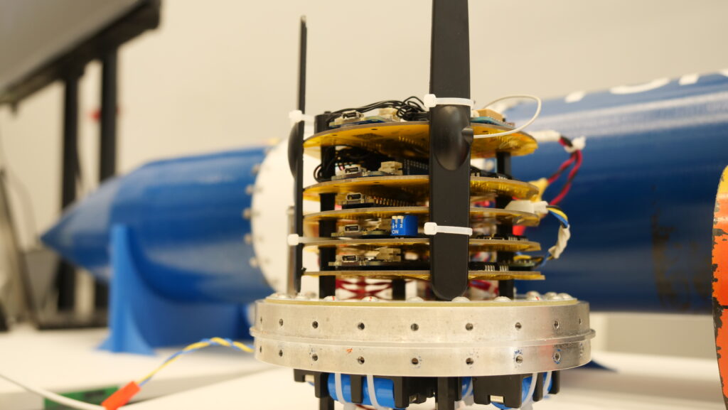 ロケットには電子機器が搭載されています。計測制御班が行う最も大切なことはパラシュートを展開する信号を適切なタイミングで送ることです。その信頼性を向上させるために日々開発を行っています。開発では電子回路や基板設計に代表されるハードウェアの知識とプログラミングに代表されるソフトウェアの知識、両方を手を動かしながら学ぶことができる点が特徴です。