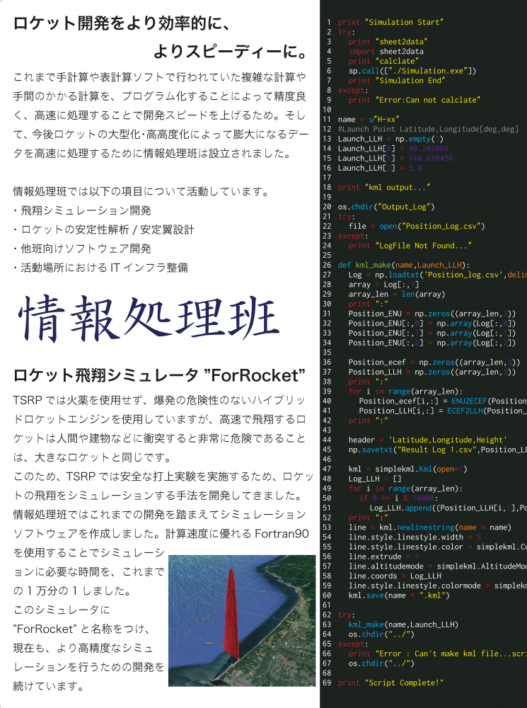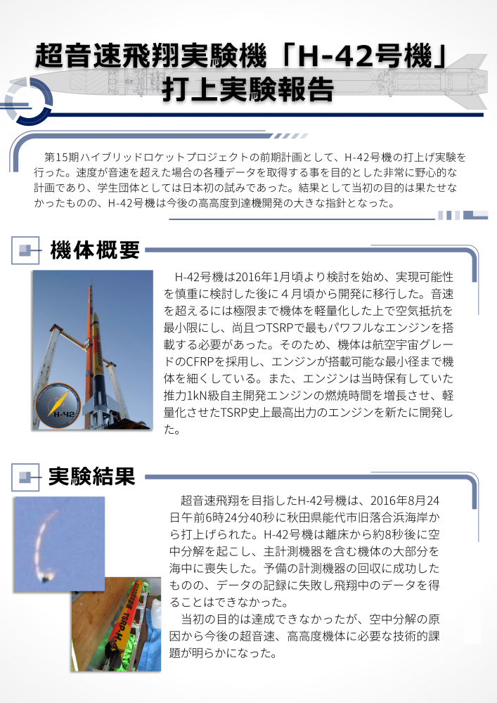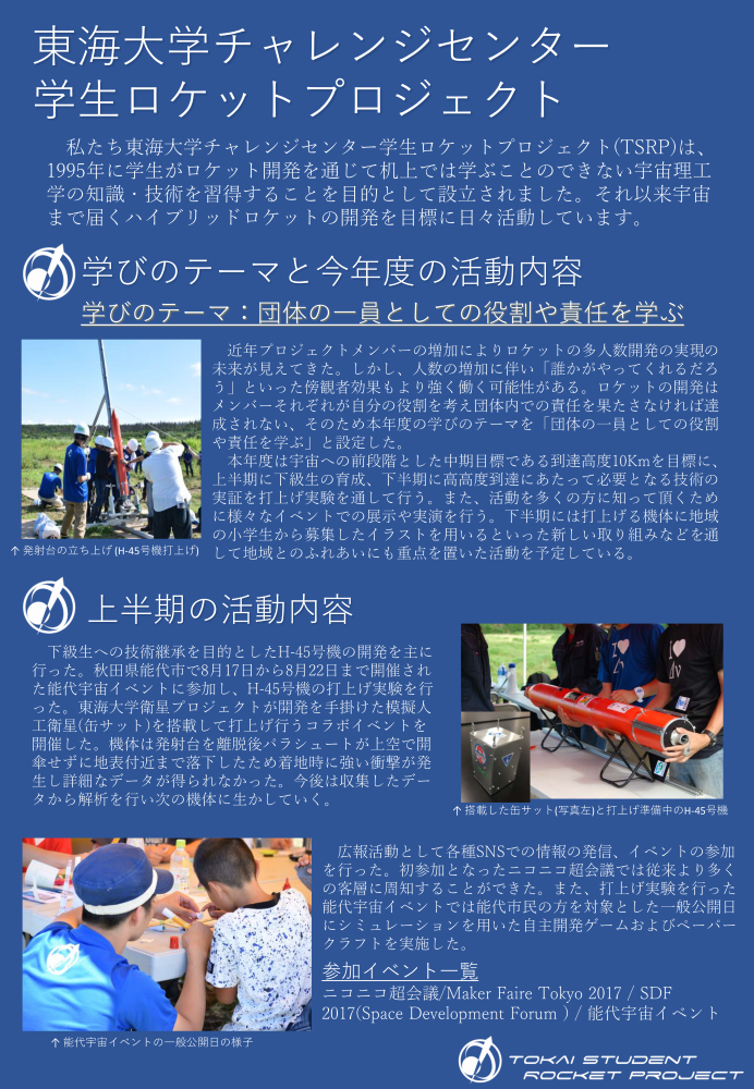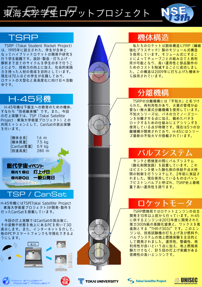 Galleryでは学生ロケットプロジェクト(TSRP)が
